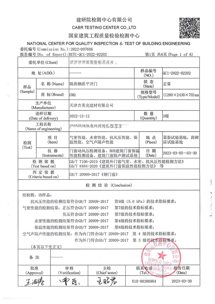 吉美克丨隔熱平開門通過(guò)五項(xiàng)性能檢測(cè) |