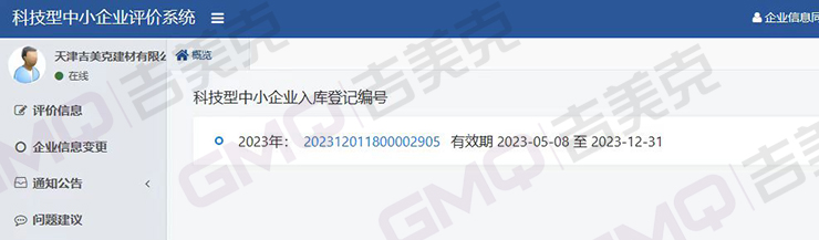 吉美克丨榮獲天津市創(chuàng)新型中小企業(yè)證書