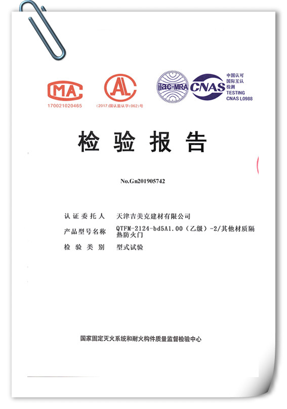吉美克丨乙級(A1.00)防火門通過型式檢驗 |