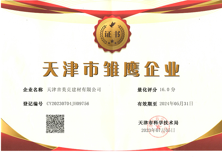 吉美克丨榮獲天津市雛鷹企業(yè)證書