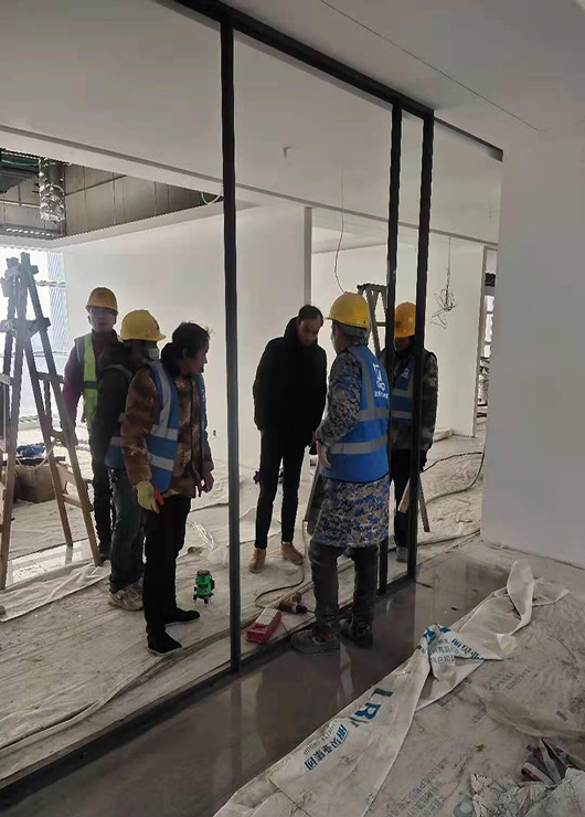 產(chǎn)品介紹:防火玻璃隔斷龍骨采用高精密冷彎型鋼,材質(zhì)Q235,整個項目一部分采用主龍骨壁厚2.5mm,防火壓板采用壁厚1.5mm,可視面60mm;另一部分材料采用主龍骨壁厚1.5mm,防火壓板采用壁厚1.5mm,可視面50mm,滿足了項目的不同需求,極窄的可視面使得隔斷整體效果簡潔大方。在保證高強度和高穩(wěn)定性的基礎(chǔ)上使玻璃面積最大化,材料表面使用粉末噴涂,其具有抗沖擊,耐磨擦,防腐蝕,耐候性能好,價格低等特點。