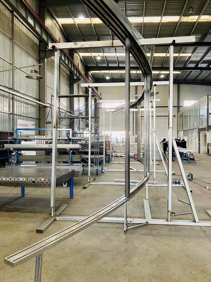 △ 鋼制弧形推拉疊門試裝 拍攝地:天津吉美克建材有限公司