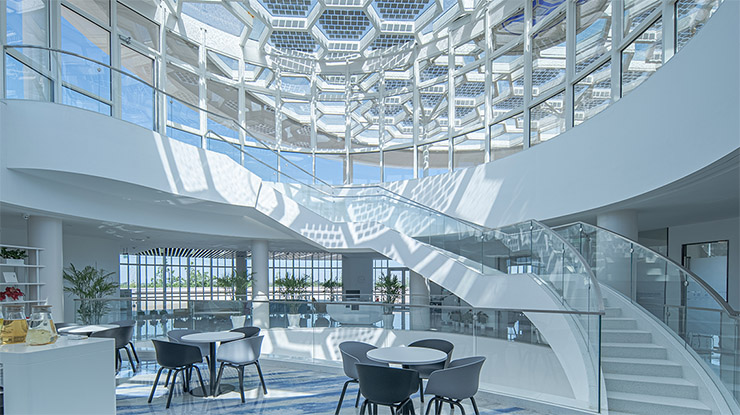 “未來源點”位于雄安站東廣場南側,建筑設計理念源自雄安站“青蓮滴露、潤澤雄安”的寓意,以淀泊風光為靈感基礎,建筑像層層蓮葉,高低錯落,形成“蓮葉三疊、魚戲蓮葉”之意。建筑立足于“世界眼光、國際標準”,以設計、施工、使用、維護等多維度為切入點,更加注重智慧科技元素的運用,嚴格按照綠色建筑標準設計建造。建筑采用了光伏直流供電系統(tǒng),基于智慧能源大腦系統(tǒng)進行管理,最大化實現(xiàn)能源實時可控、系統(tǒng)化節(jié)能。通過整合服務層、應用層、網(wǎng)絡層、感知層資源,“未來源點”搭建了一套完整的具有創(chuàng)新特色的有機智慧體系,建立了智慧IOC運營服務平臺,集成安防、能源、環(huán)境、設備設施管理等功能,為未來投入使用提供智能化、高品質的服務,這里將成為雄安站樞紐片區(qū)的城市名片、地標級城市會客廳。