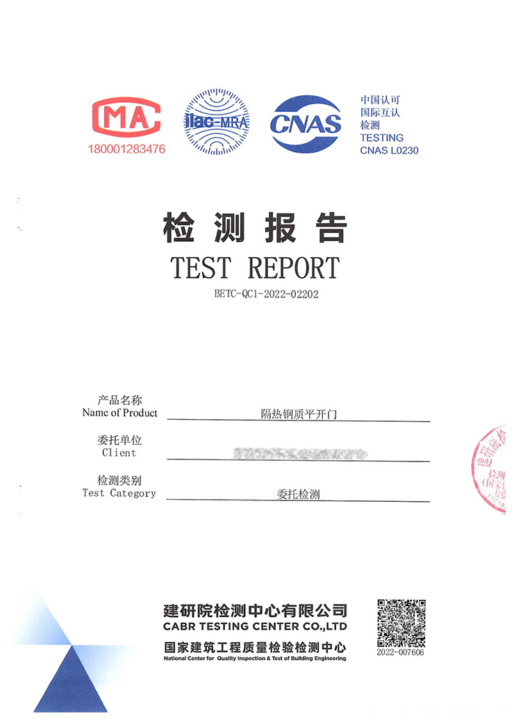 吉美克丨隔熱平開門通過(guò)五項(xiàng)性能檢測(cè) |