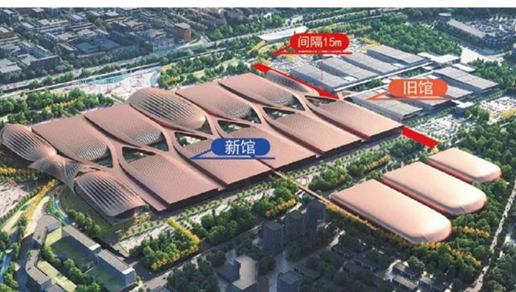 新國展二期是北京市“十四五”時期的重大項目,位于北京市順義區(qū),緊鄰新國展一期,距離首都機場僅 2 公里,總建筑面積約 61.5 萬平方米,是一座集展覽、會議、辦公、商業(yè)等多種功能于一體的大型現(xiàn)代化建筑群。