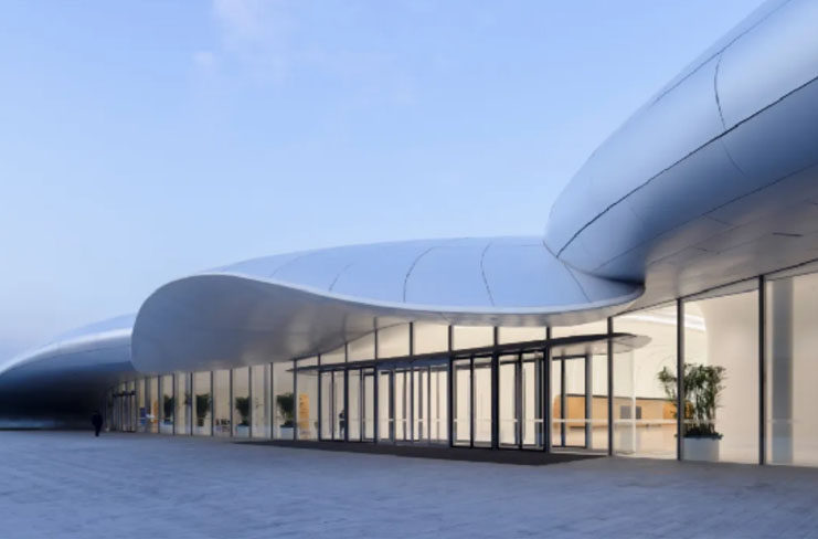 我公司配合生產(chǎn)及安裝了此項(xiàng)目的400㎡鋼制隱框門(mén),門(mén)框采用鋼制斷熱型材,搭配鋁制浮雕拉手,我公司專(zhuān)利研發(fā)隱框技術(shù),鋼制框架搭配外置安裝彩釉玻璃,實(shí)現(xiàn)隱框效果,整體純凈簡(jiǎn)潔、輕盈通透的外觀形象。