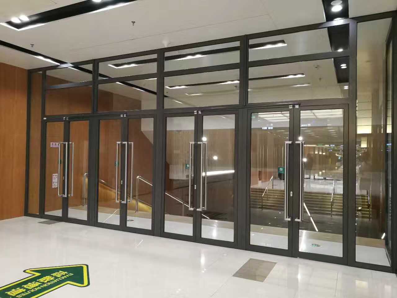 鋼制門配多瑪隱藏式閉門器,雙開門還同時配關(guān)閉順序器。