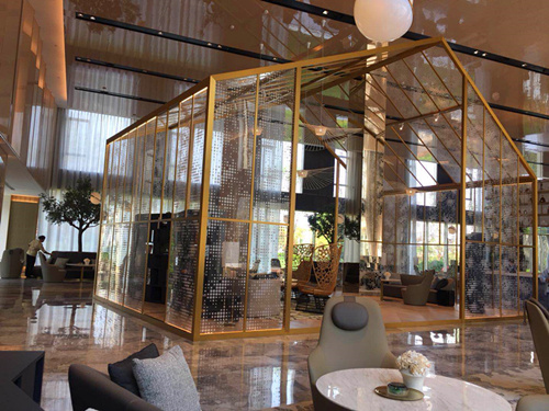 計理念,結(jié)合整體進(jìn)口鋼型材全部采用香檳金色氟碳噴涂處理,使整個建筑格調(diào)上升,可謂點睛之筆。