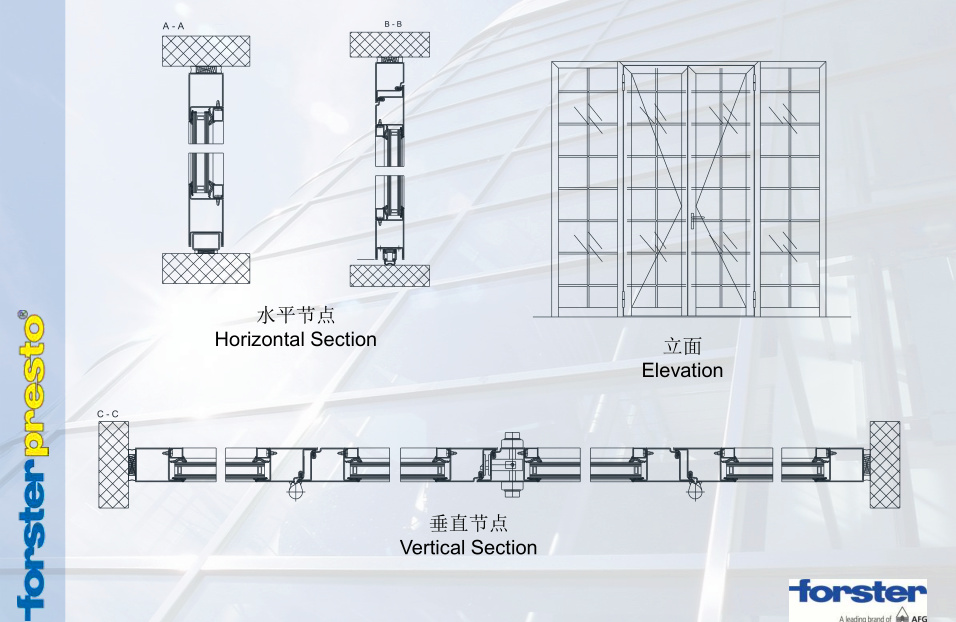 該項(xiàng)目采用Forster Presto 50 全鋼系統(tǒng),該系統(tǒng)具有隔熱、防火控?zé)熂胺辣I功能,極為安全,能夠長(zhǎng)期受壓,符合