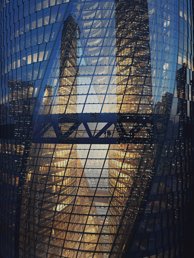 地標(biāo)性建筑。大師收山之作,是普利茲克建筑獎獲得者、享有建筑界“女魔頭”美譽、已故的世界建筑大師扎哈.哈迪德女士獨立設(shè)計的最后一件建筑作品(另外,聯(lián)合設(shè)計北京新機場航站樓)。結(jié)構(gòu)為DNA雙螺旋造型,巧妙化解地鐵聯(lián)絡(luò)線將地塊一分為二的影響,設(shè)計成盤旋上升、流線型的雙塔。擁有世界最高中庭,由雙塔圍合而成,豎向近200米高,盤旋上升至天空,貫穿所有樓層,空間體驗震撼。外觀呈“夜空之眼”意象,外立面設(shè)計為魚鱗式幕墻,將雙塔合二為一,渾然天成,極具現(xiàn)代建筑設(shè)計風(fēng)格,展現(xiàn)具有創(chuàng)新精神的時代特征。