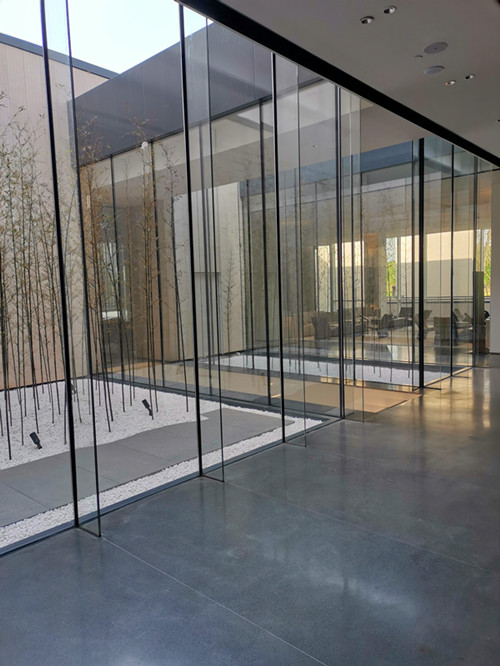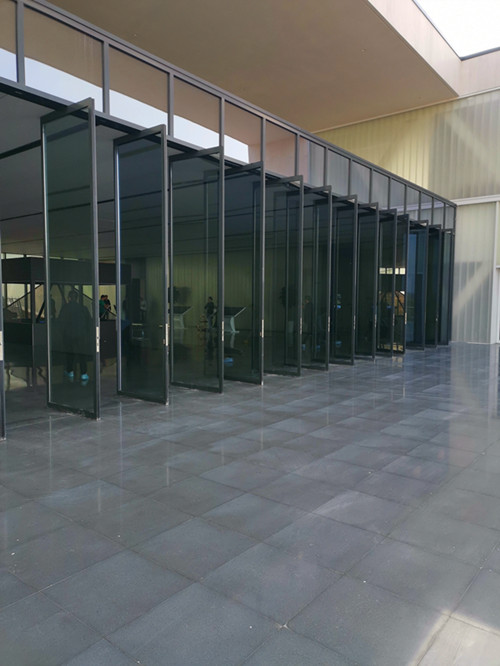 該項目整體采用手動中軸門作為區(qū)域分隔主體,4.2米超高中軸門,全部采用Forster Unico 隔熱系統(tǒng)進口鋼型材焊接制成,其纖細的可視面結構在滿足了門框型材不外露的美觀要求的同時,還充分實現(xiàn)了高強度的建筑需要;通過特殊工藝處理,使4.2米超常規(guī)高度門最大限度的實現(xiàn)了安全性和穩(wěn)定性。