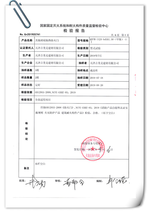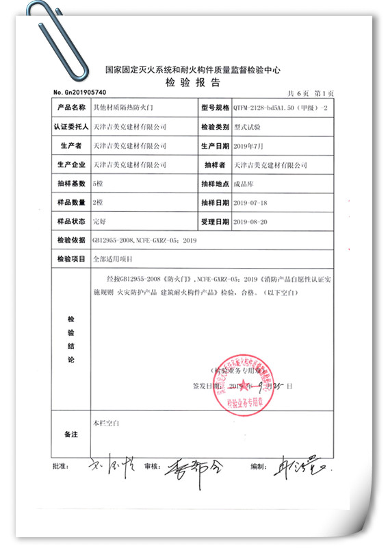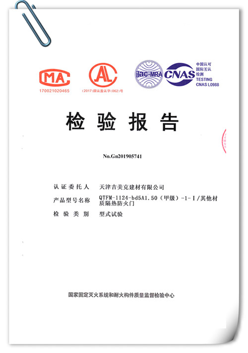 吉美克丨甲級(A1.50h)防火門通過型式檢驗 |